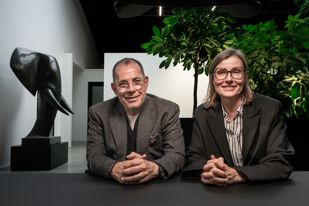 Am Kopfende die lebensgroße Plastik eines Elefantenkopfs aus Granit des Langenberger Künstlers Bernd Bergkemper, seitlich ein individuell geschaffenes Werk von Bildhauer Lothar Seruset. Gegenüber ein großformatiges Gemälde des Malers Moreno Ugo, neu dazugekommen ist erst kürzlich ein „Turmhaus“ von Anna Arnskötter. Auf dem Klavier spielt ein Mitarbeiter während seiner Mittagspause. Ein Raum, der Möglichkeiten eröffnet und urban wie einladend wirkt: es ist der 2024 eröffnete Open Work Space der Firma Lübbering.