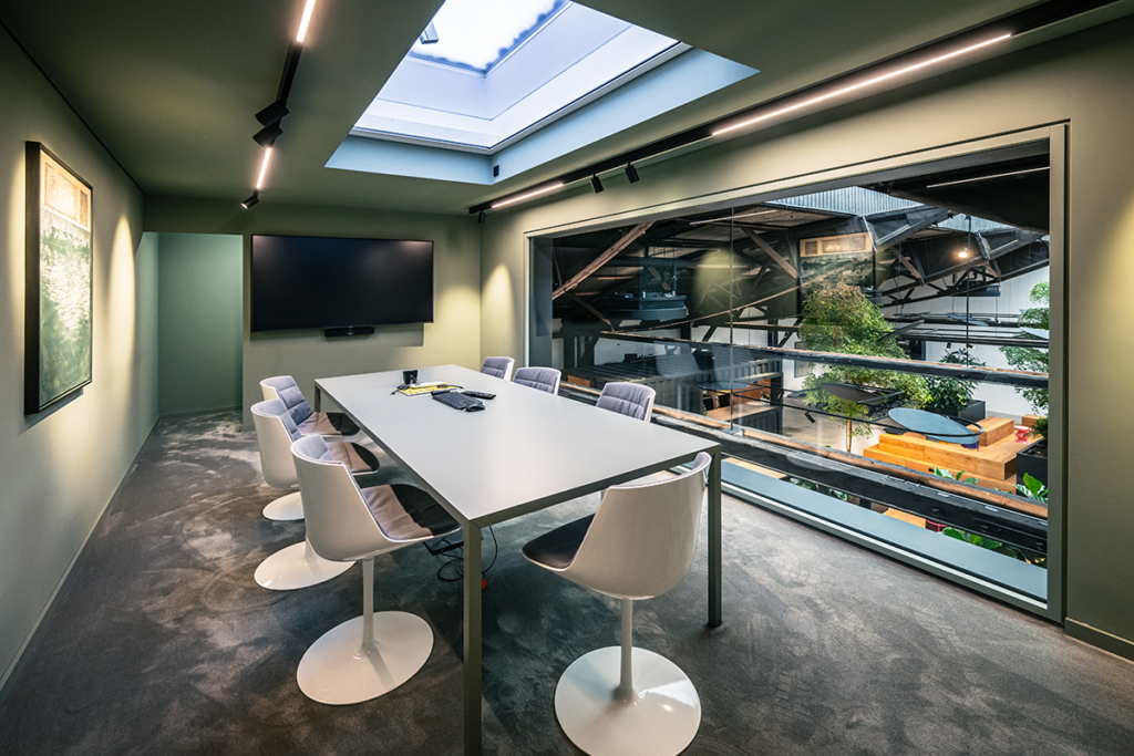 Innerhalb der mehr als 110 Jahre alten Grundmauern ist ein Raum entstanden, der vielfältige Nutzungsmöglichkeiten bietet. Ob für Mitarbeiterschulungen, die eigene Hausmesse, Treffpunkt, Veranstaltungsraum, Achim und Anja Lübbering wünschen sich eine möglichst offene Nutzung und öffnen ihre Räume so auch für das benachbarte Zumbusch-Haus. „Die Menschen wachsen mit der Halle, die Halle mit den Menschen”, so Achim Lübbering zu den weiteren Plänen.